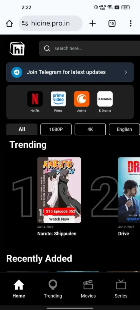 HiCine comes with a smart search feature that helps users quickly find movies, shows, or anime. You can search by name or keyword, saving time and making content discovery fast and simple.